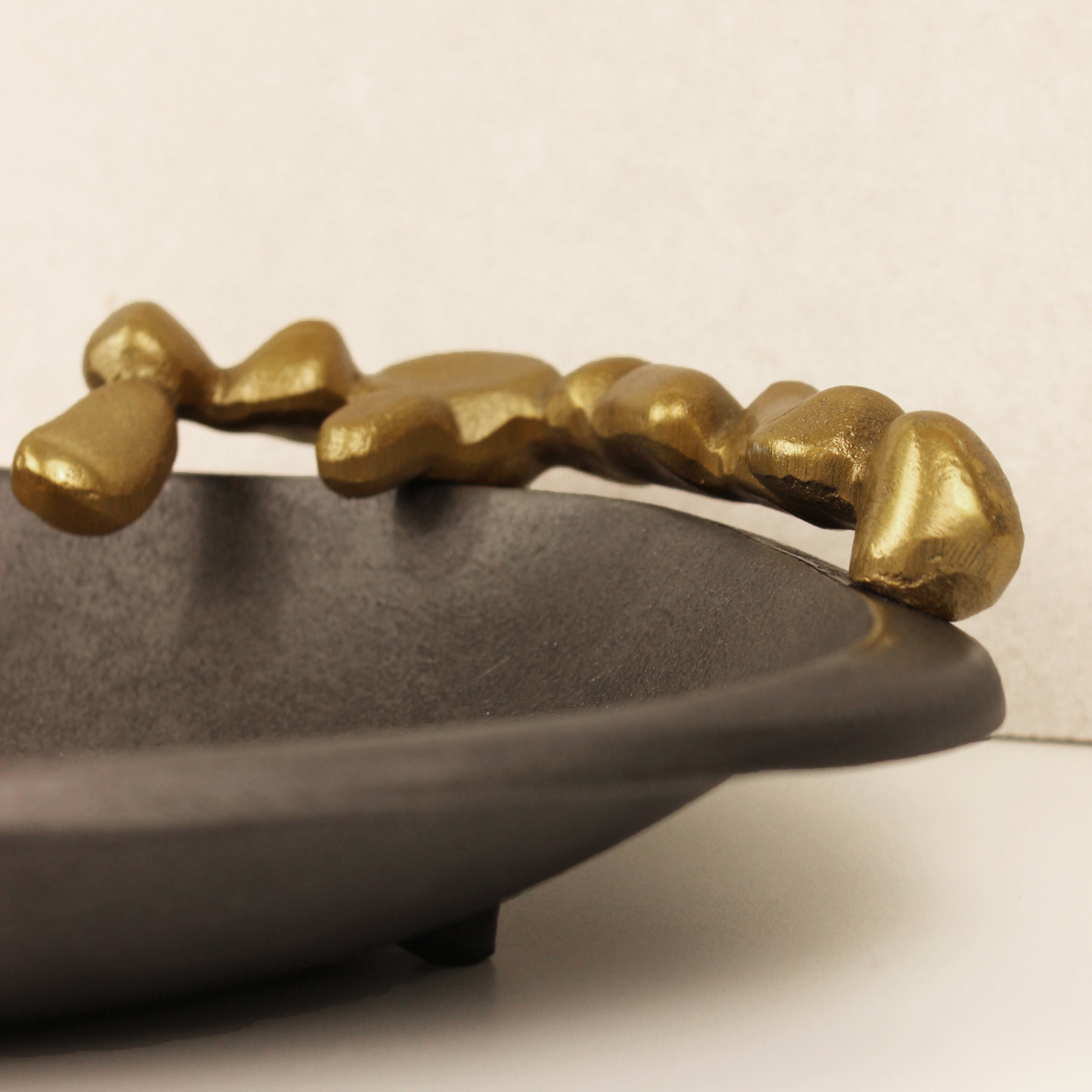 Com um design contemporâneo e minimalista, esta peça em alumínio preto distingue-se pelo detalhe decorativo dourado, que lhe confere sofisticação e um toque artístico. Pode ser usada como centro de mesa, elemento decorativo ou como base perfeita para criar a sua vela personalizada SOWART.